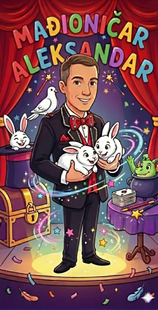 Napravite rođendan vašeg deteta sa najboljim od najboljih profesionalnih mađioničara, uz najoriginalniji mađioničarski program, uz brižljivo pripremane predstave i pravi odabir trikova za svako godište dece, gde dosta trikova sa puno ljubavi smišlja, kreira i priprema za svoje male drugare njihov mađioničar Aleksandar.